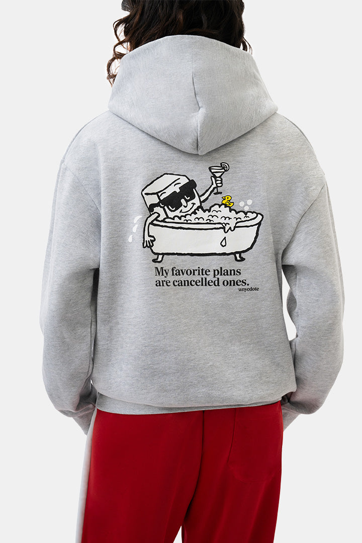 Elevate your wardrobe with our unisex mid weight pullover hoodie. This premium sweatshirt offers a contemporary look that's both stylish and functional, making it an essential addition to your wardrobe. Whether you're lounging at home or heading out, this hoodie seamlessly fits any occasion. "anycdote's hoodie features a front signature "a logo and Vale's, "My favorite plans are cancelled ones" back graphic.