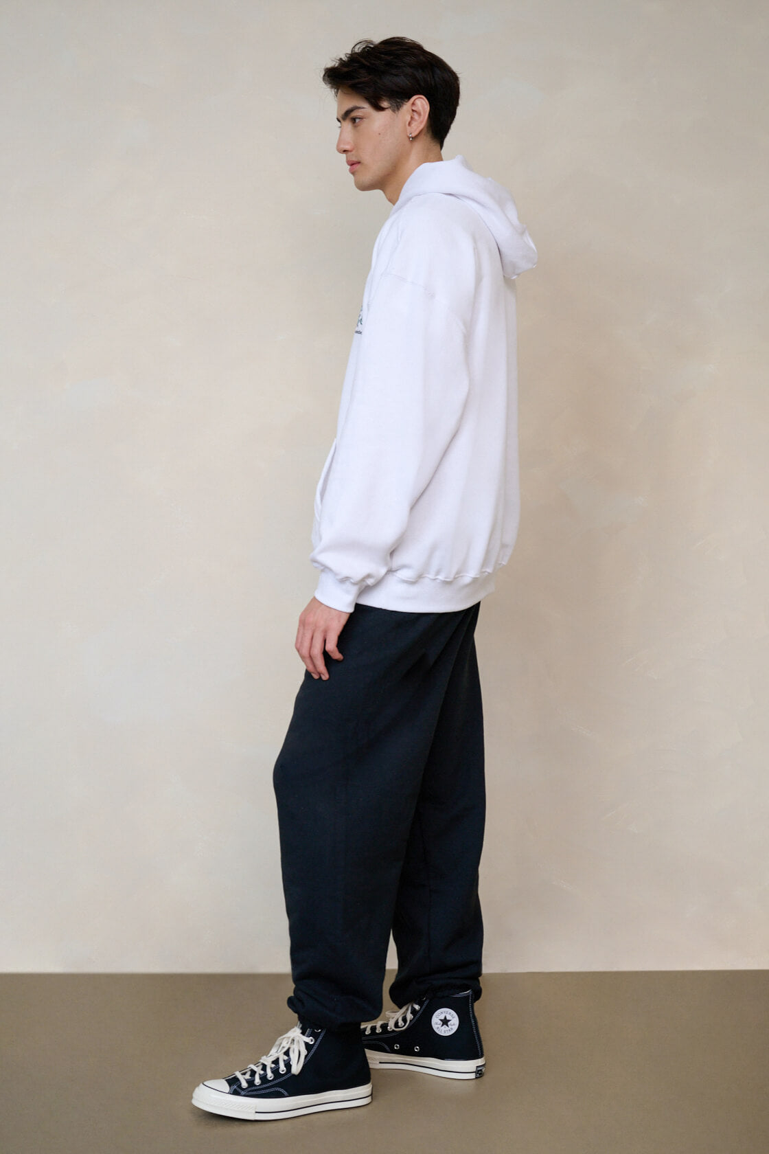 Relaxed, slightly oversized silhouette with drop shoulders and a cordless, roomy hood. For a closer fit, consider sizing down.
